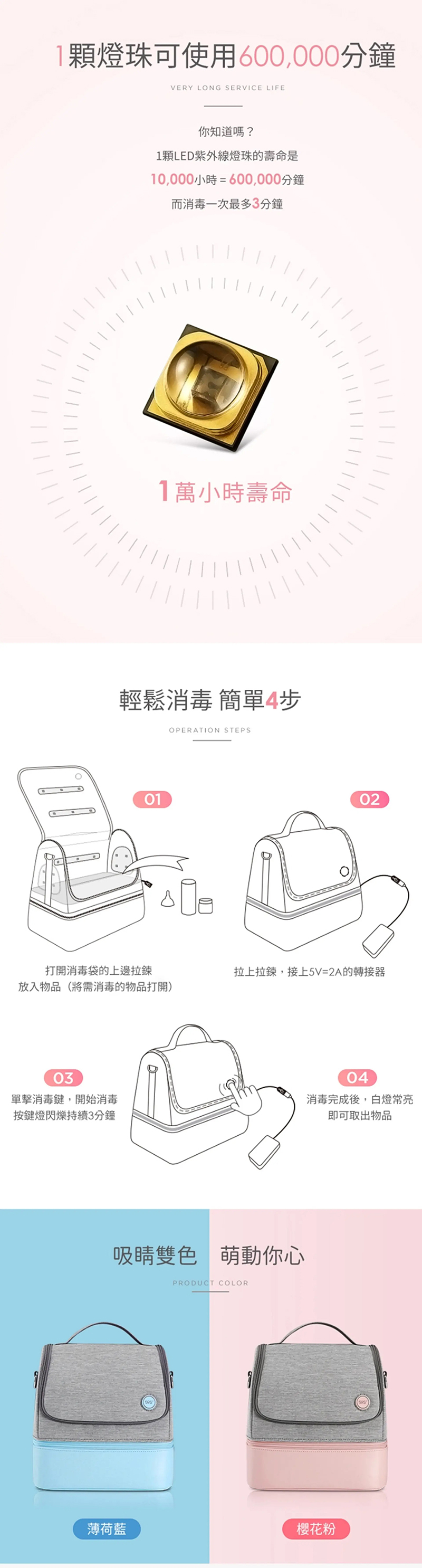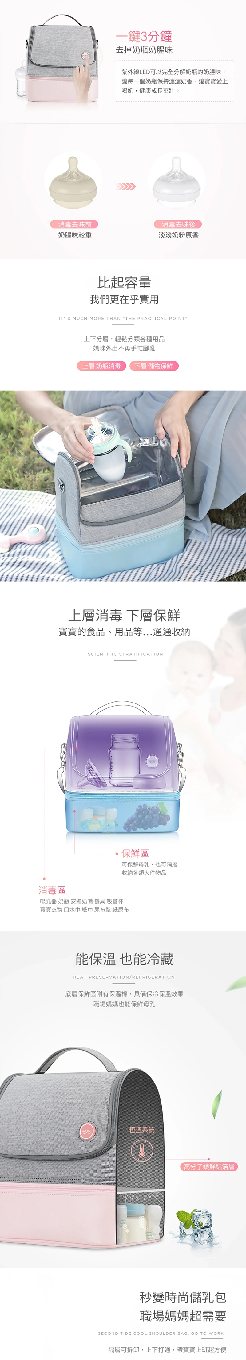 可以手提、肩揹,當作攜帶型具有消毒功能的媽媽包也是非常好用唷!