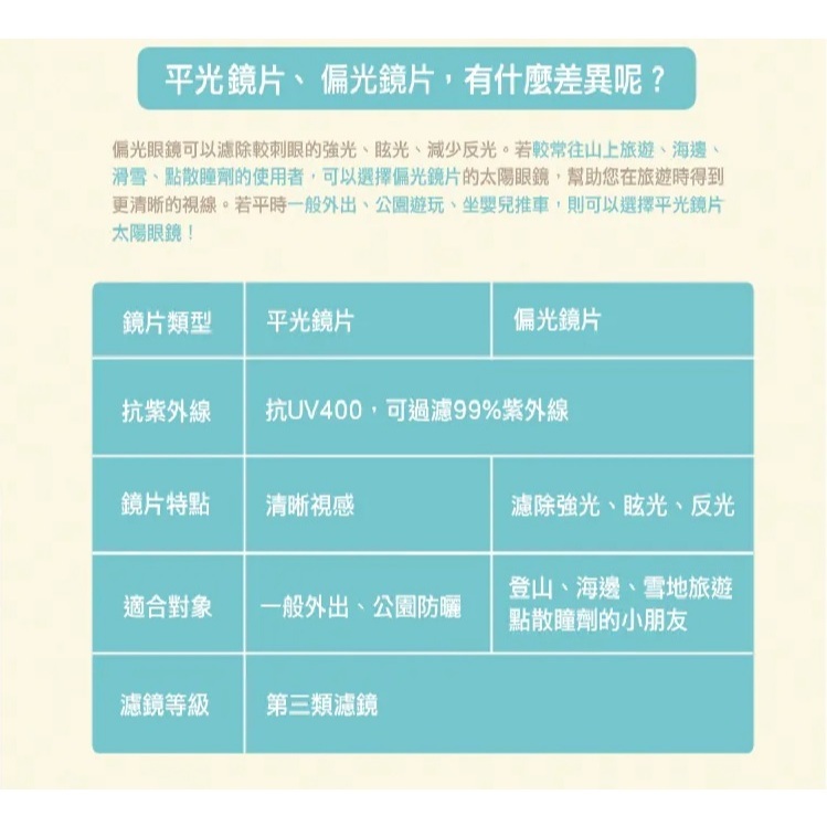 材質:TAC 高強度鏡片、EP 彈性可彎曲鏡框
