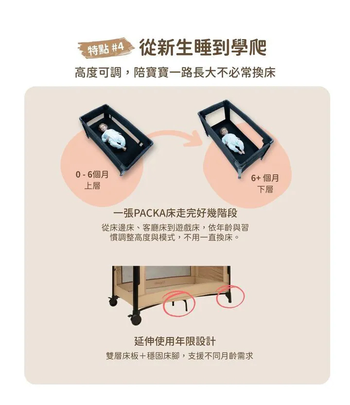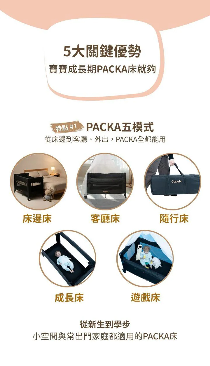 ■ 五模式:床邊床/客廳床/隨行床/成長床/遊戲床