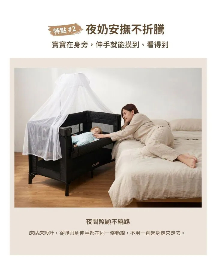 ■ 升降調整扶手,人還在床上就能拍拍、安撫、看寶寶