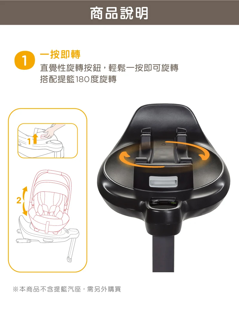 ■ 搭配提籃和汽座,單手輕鬆旋轉