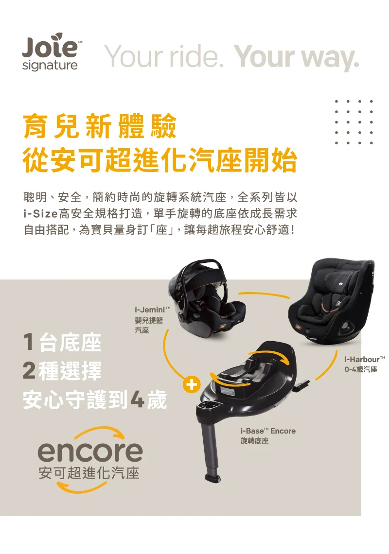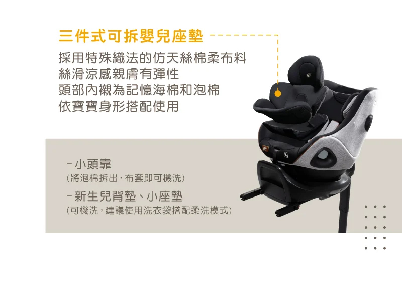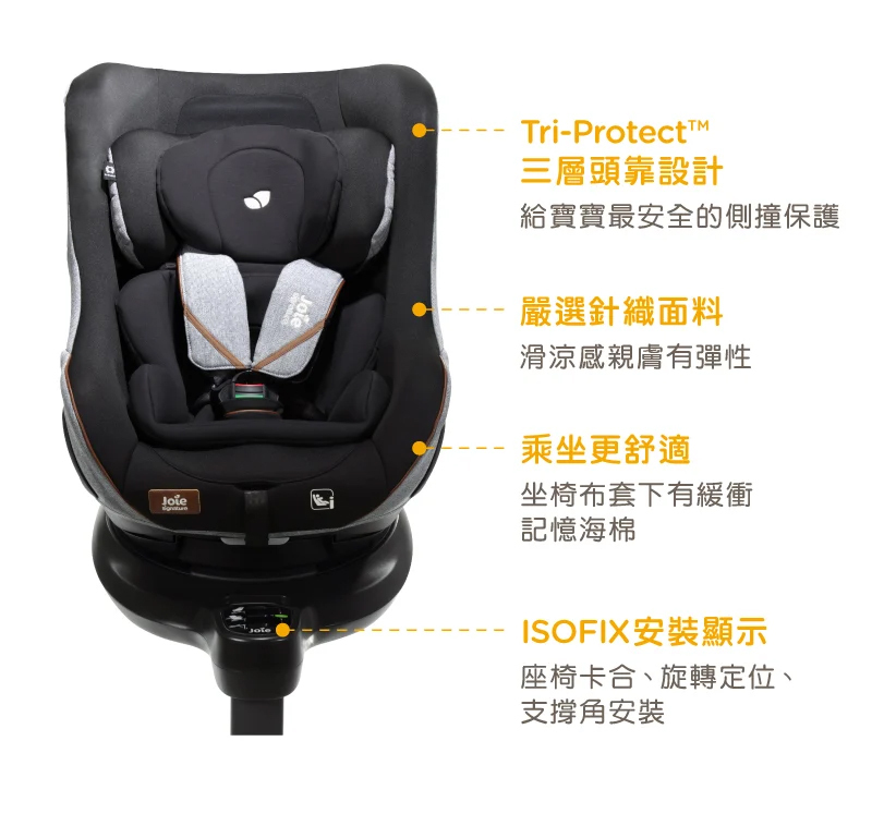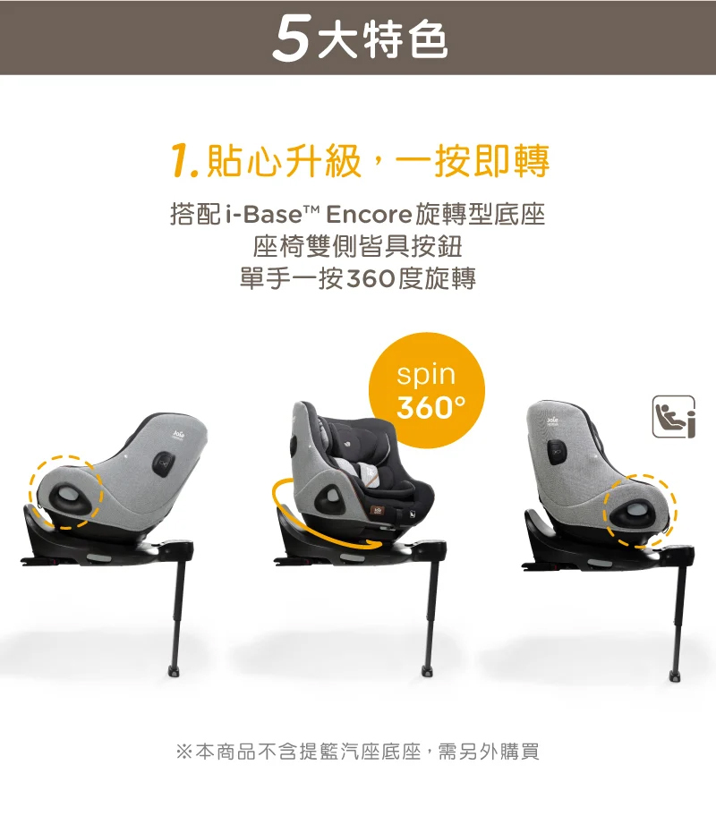 ■ 搭配 i-Base™Encore 旋轉底座(底座需另購),ISOFIX安裝,雙側旋轉360度
