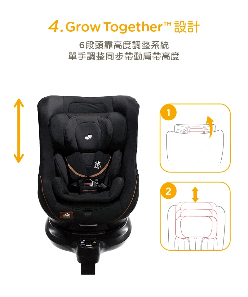 ■ Grow Together™ 6段頭靠高度與肩帶同步調節