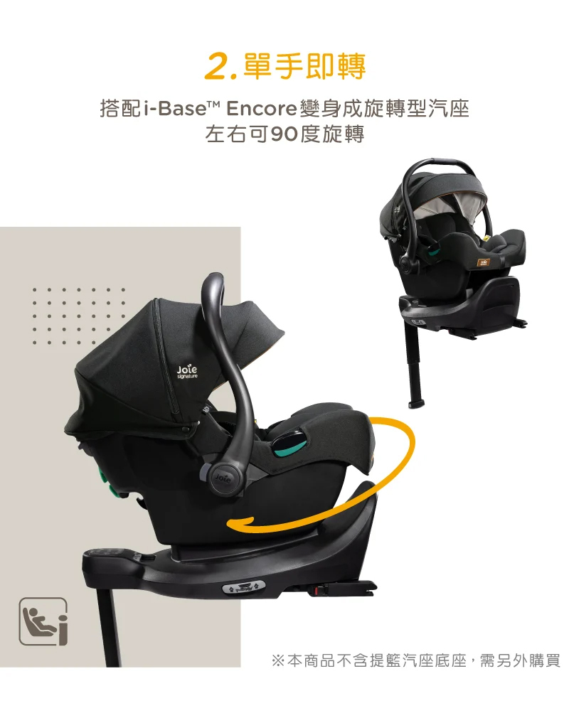 ■ 搭配 i-Base™Encore旋轉型底座(底座需另購),ISOFIX安裝,雙側旋轉90度
