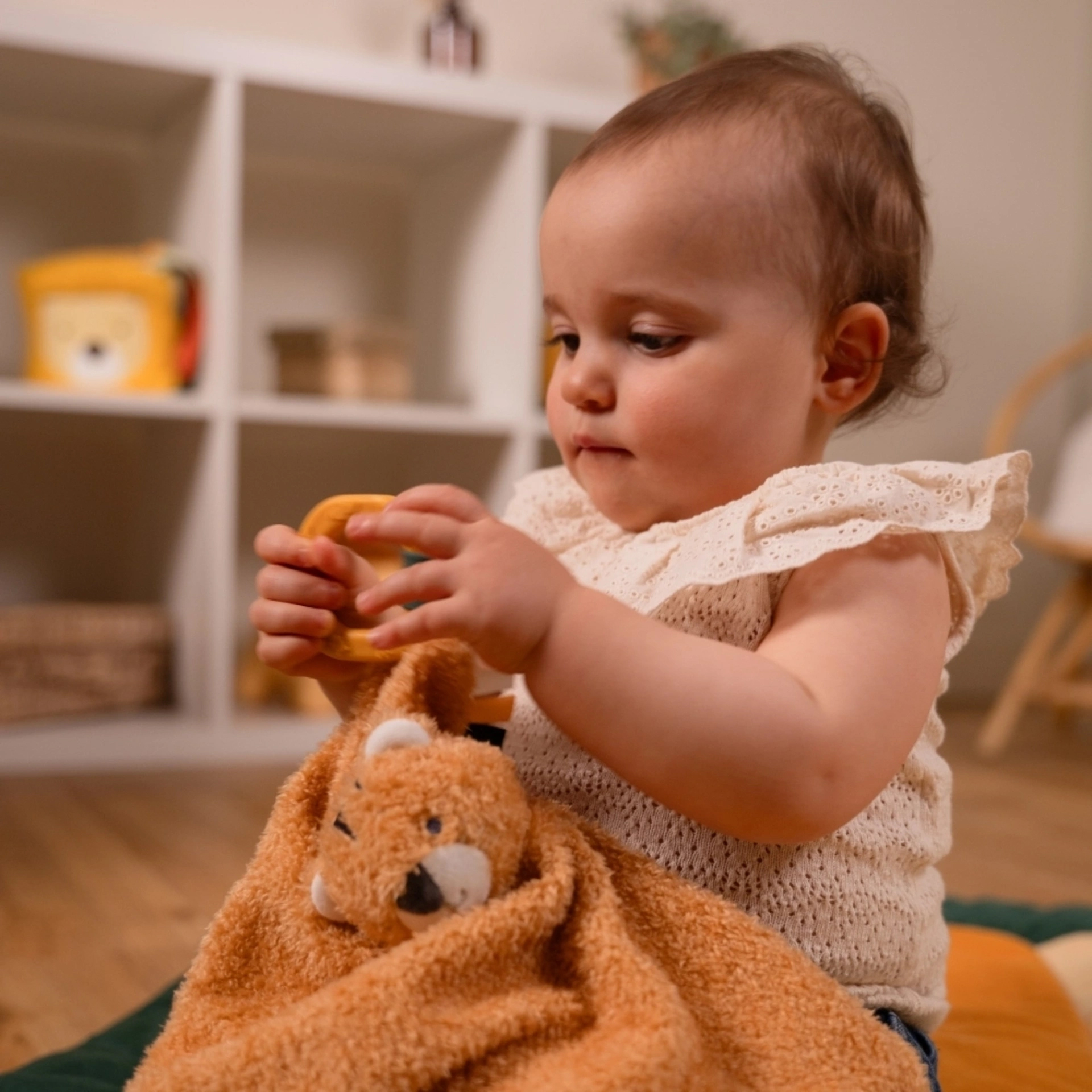 ■ 柔軟玩偶安撫巾以細緻絨毛材質打造,觸感柔軟,帶來安全感,是寶寶的安撫小夥伴