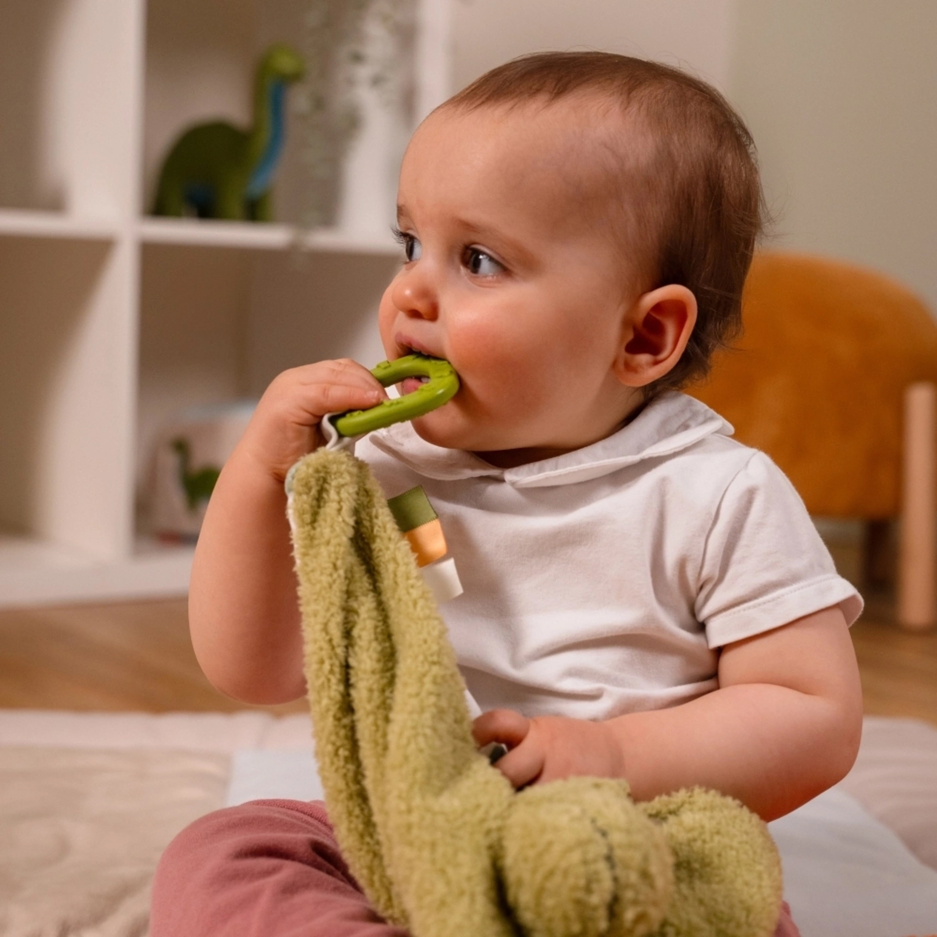 ■ 內附固齒器,可舒緩牙齦不適,兼具安撫與啟蒙功能