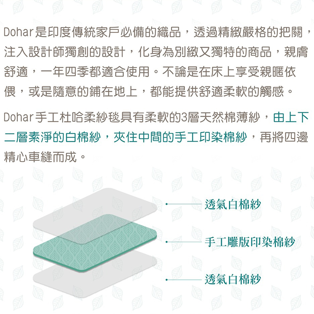 ● 承襲古老印染技術,每件都純手工壓印,沒有一件Dohar一模一樣,真正獨一無二。