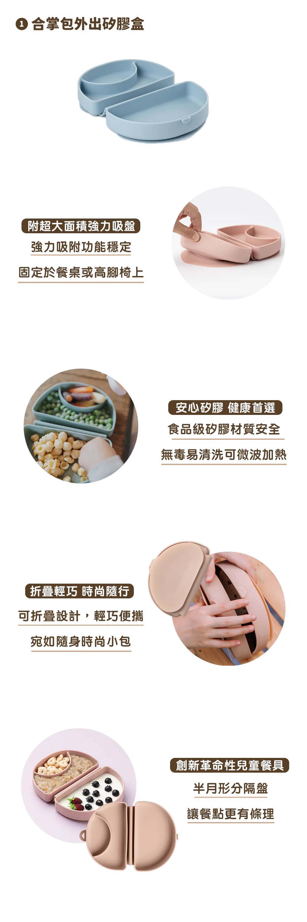 品名 : Fold&Scoop輕鬆外出組(合掌包矽膠盒+湯匙)