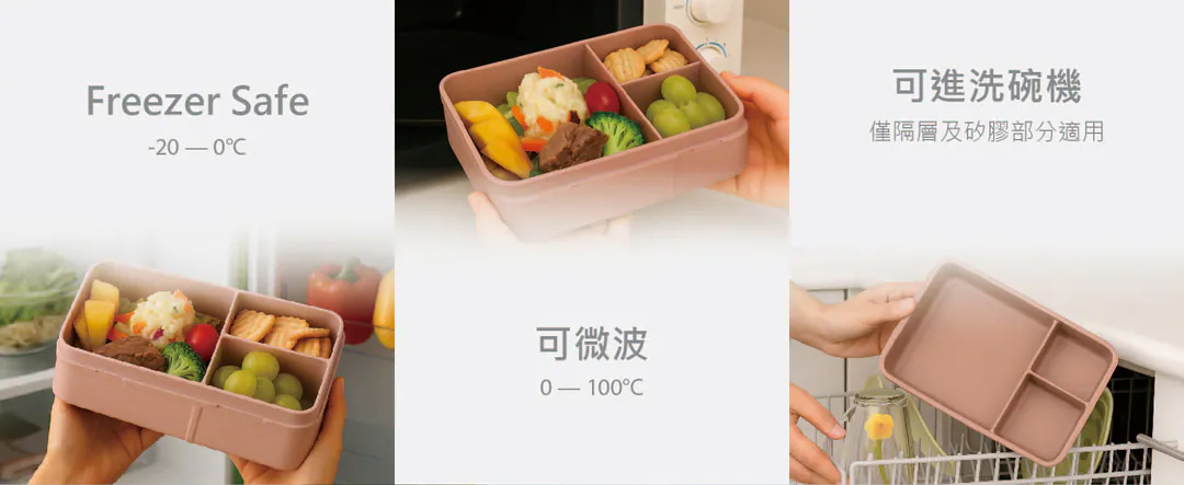 耐熱溫度:PP (-20°~110°C)、ABS (-20°~70°C),、矽膠(-20°~200°C)