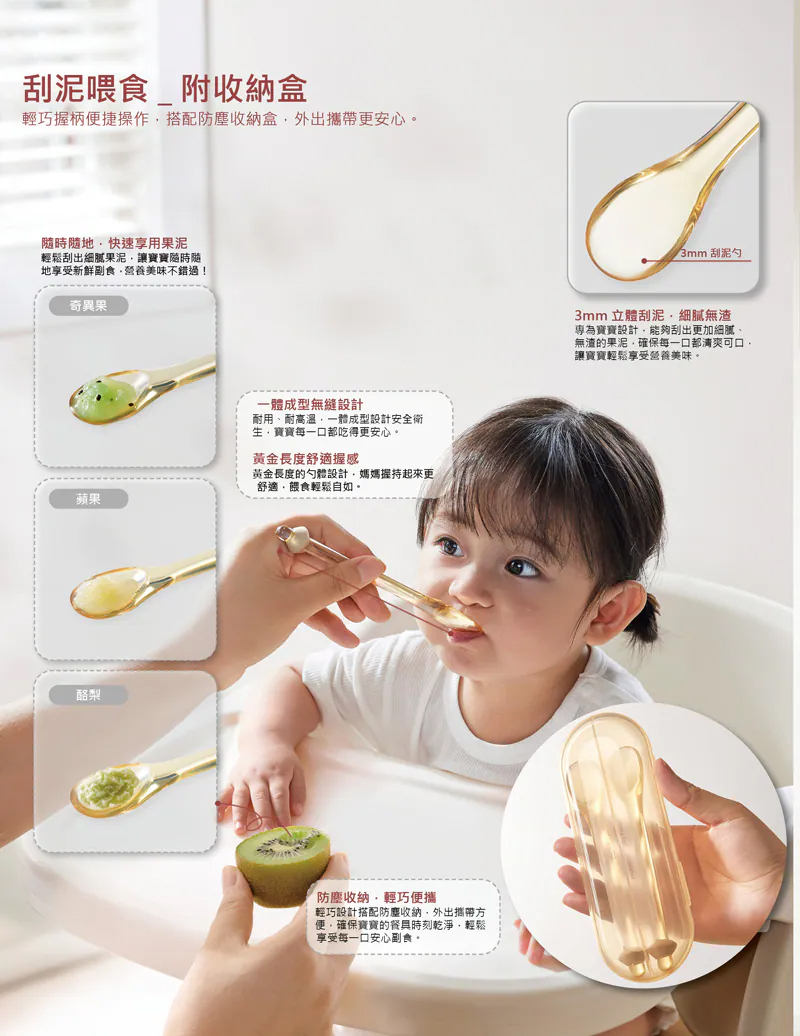 材質:匙/聚苯碸 120℃、握柄/矽膠 120℃、包裝盒/聚丙烯 120℃