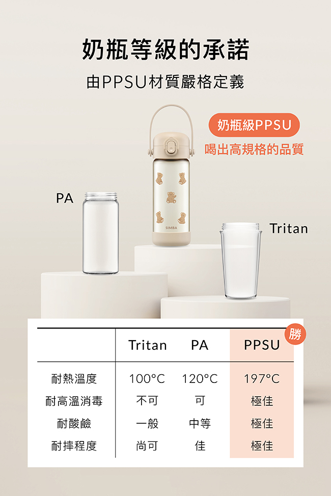 ◾ 鉑金PPSU,耐熱抗摔
