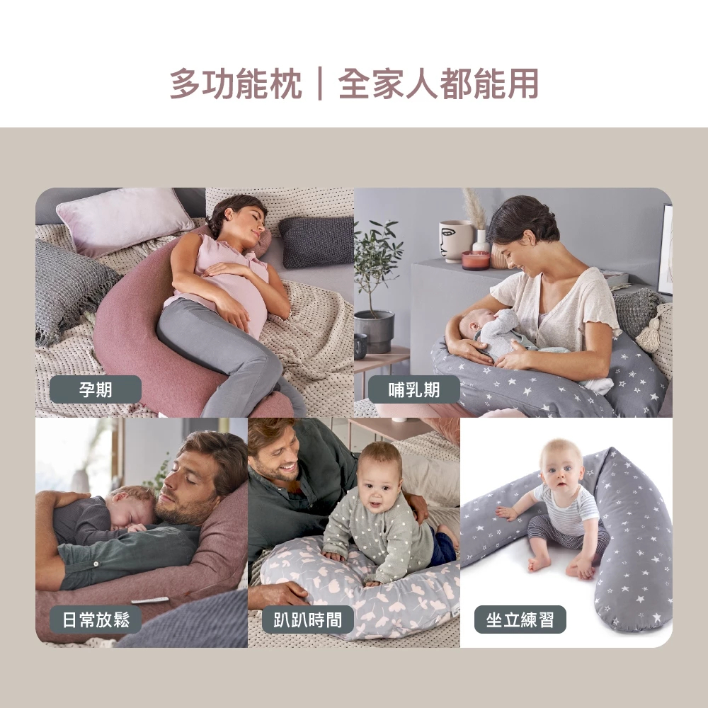 依個人需求和舒適度,調整枕頭位置,可用以支撐頭、頸、背、腰和腿部等。