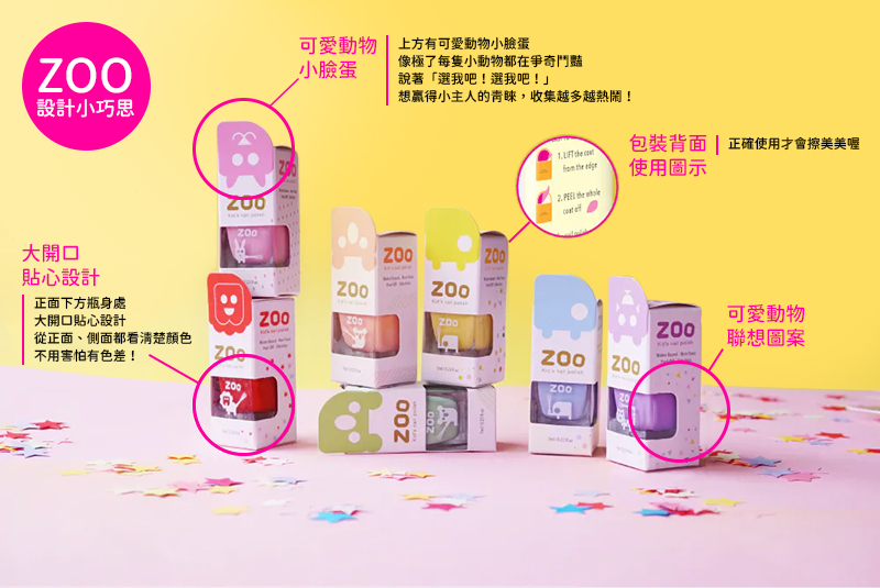 / 為兒童設計的 ZOO 指甲油5種貼心設計! /
